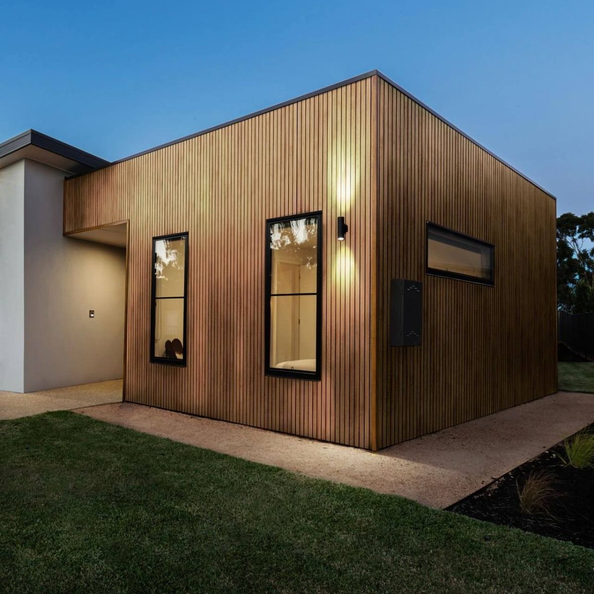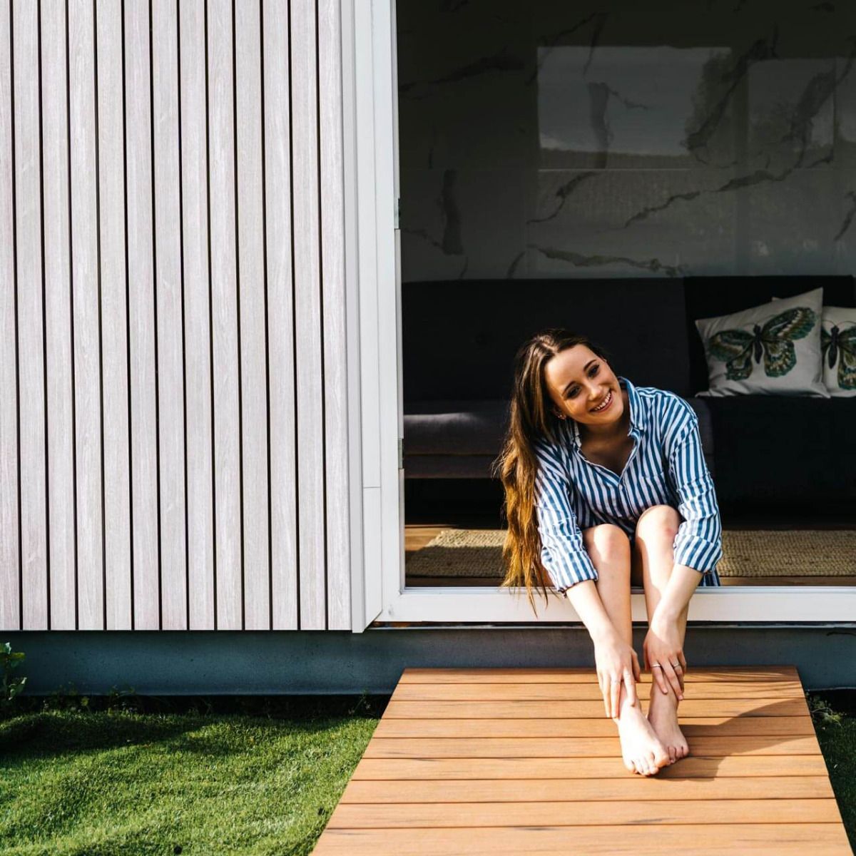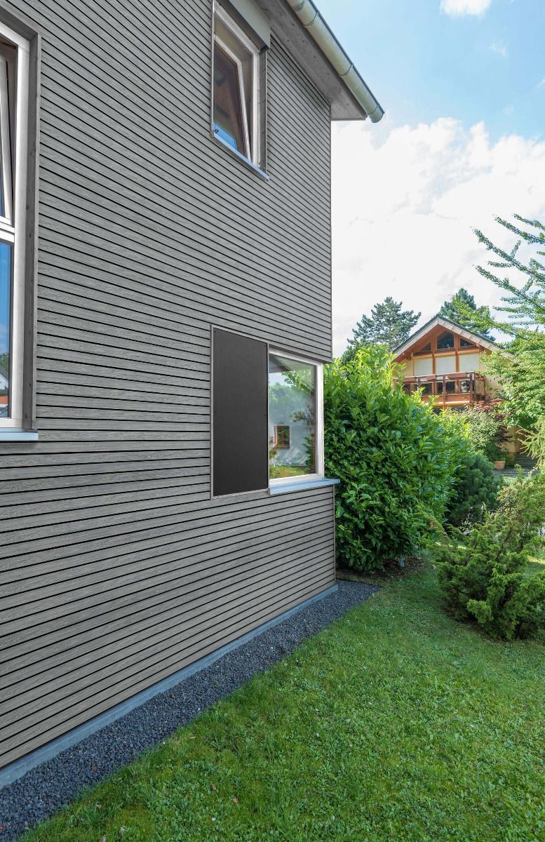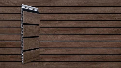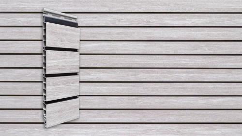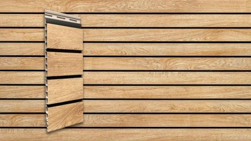 Fasádní desky z kolekce vinyPlus Quattro se vyznačují širokým čtyřitým profilem, který vytváří lamelový efekt. Laminovaný povrch je z UV dýhy nejvyšší kvality s texturou připomínající dřevo.