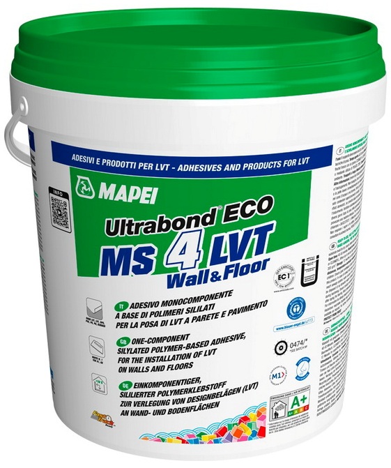 Ultrabond Eco MS 4 LVT Wall&Floor je jednosložkové lepidlo na bázi silanových polymerů. Toto lepidlo je vhodné pro místnosti se zvýšenou vlhkostí i bez zvýšené vlhkosti a pro lepení podlahy na savé (beton, anhydrit apod.) i nesavé podklady (dlažba, teraco apod.).