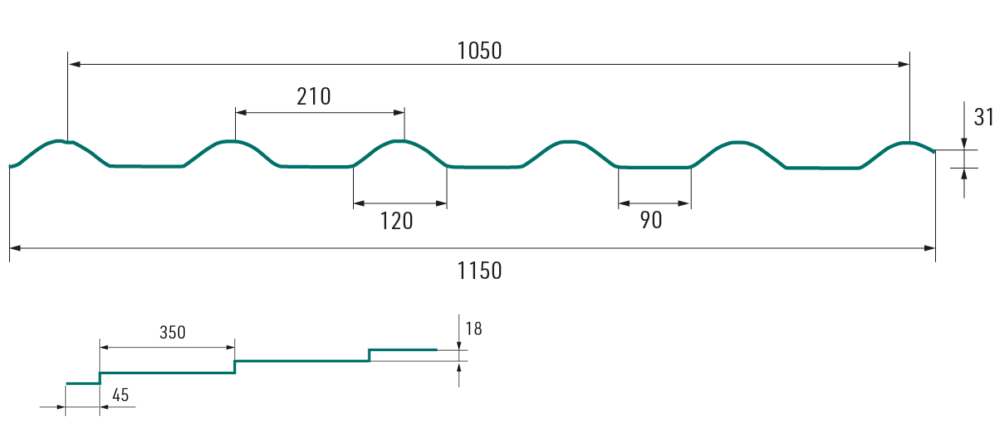 - výška profilu je 31 mm a výška prolisu je 20 mm
