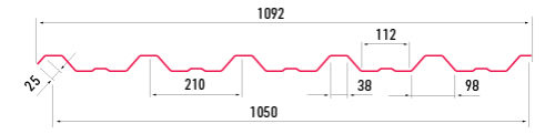 - celková šířka je 1092 mm a krycí šířka je 1050 mm
