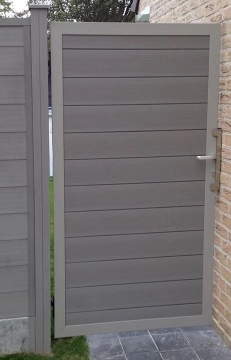 Je zhotovená z ocelového rámu a výplně desek DF1B15. Součástí branky jsou nerezové stavitelné panty, zámek (bez vložky), protikus zámku a moderní kování klika - klika. Otvírání levé nebo pravé sa volí při montáži, potřebná mezera mezi sloupky je 1 060 mm.