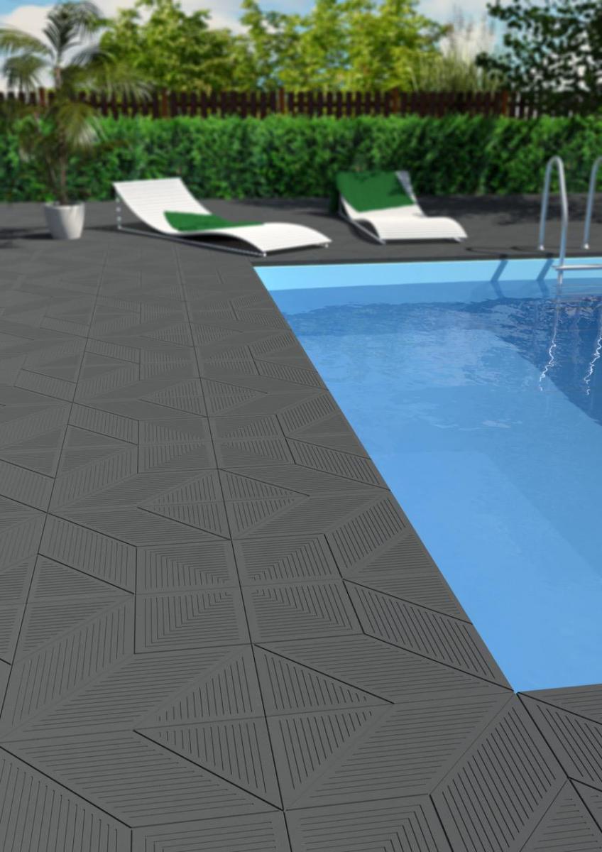 Alternativa k našim plastovým terasovým deskám. Dlažbou s dezénem si v ploše vytvoříte vlastní ornament. a když se náhodou okouká, poskládáte si jiný nebo použijete dlažbu hladkou.