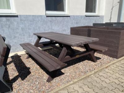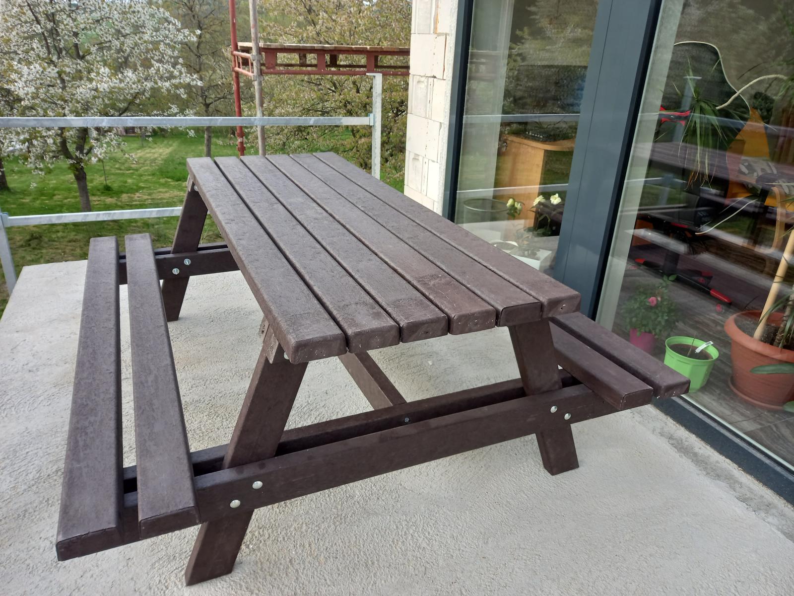 Kemp set Áčko využijete prostě všude tam, kde potřebujete praktické a odolné posezení o které se nebudete muset starat, ze kterého se neloupe žádná barva a nezadřete si z něj třísku. Všechny sedáky obsahují ocelové výztuhy a ze spodní strany stolu je integrován zpevňující rám. Kemp set Áčko nabízíme ve dvou provedeních délky - 1,7 m a 2 m. U stolu i na lavicích jsou krajní desky zaoblené, takže posezení je velmi pohodlné. Plastový Kemp set Áčko nevyžaduje žádnou údržbu. Nenasakuje vodu a po dešti stačí kapky setřít rukou a můžete stolovat. Na zimu jej není nutné uskladňovat, mráz mu nevadí. Kemp set Áčko dodáváme jako stavebnici včetně všech spojovacích prvků. Po smontování má takovou hmotnost a rozměry, které minimalizují jeho případnou krádež.