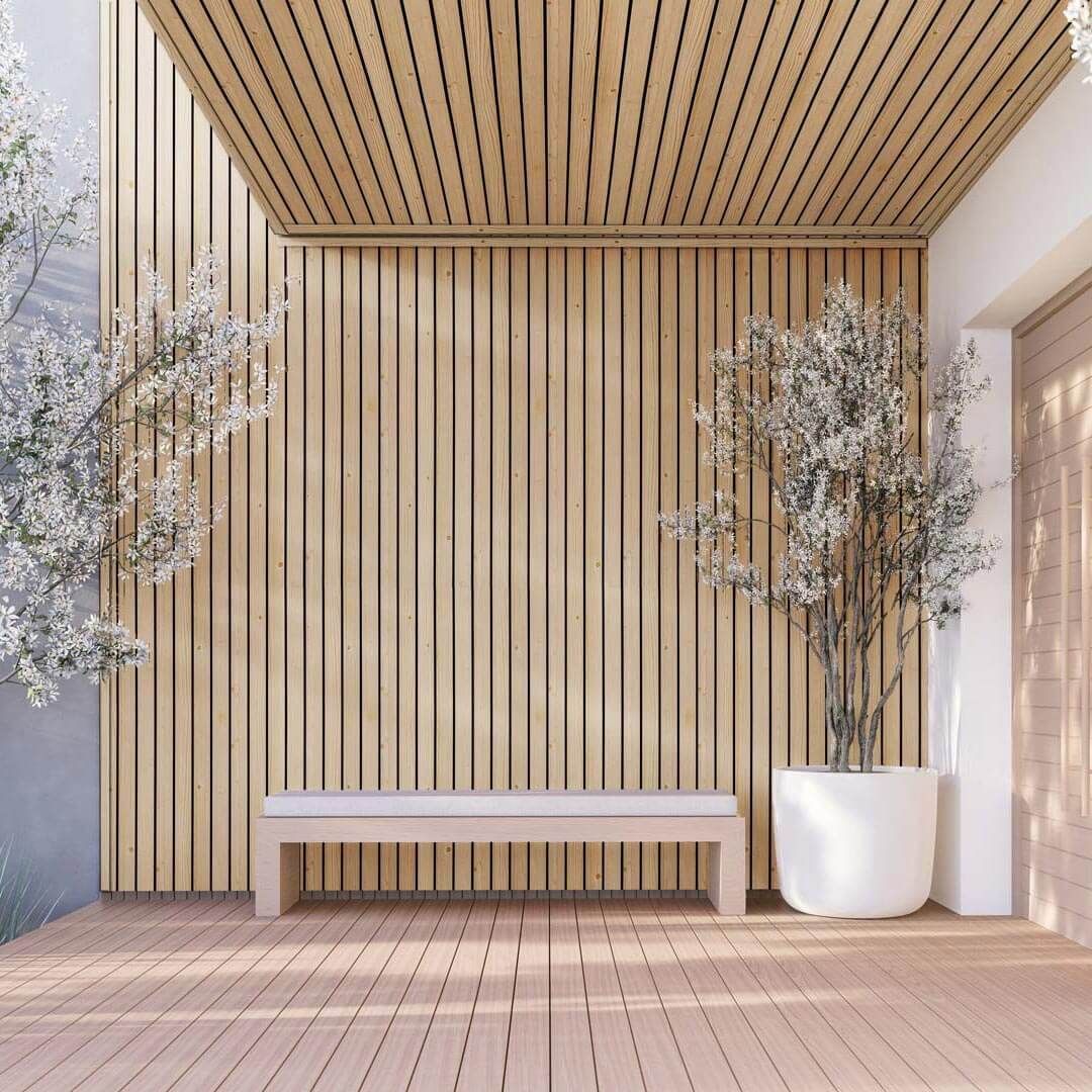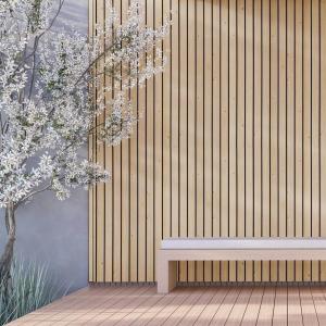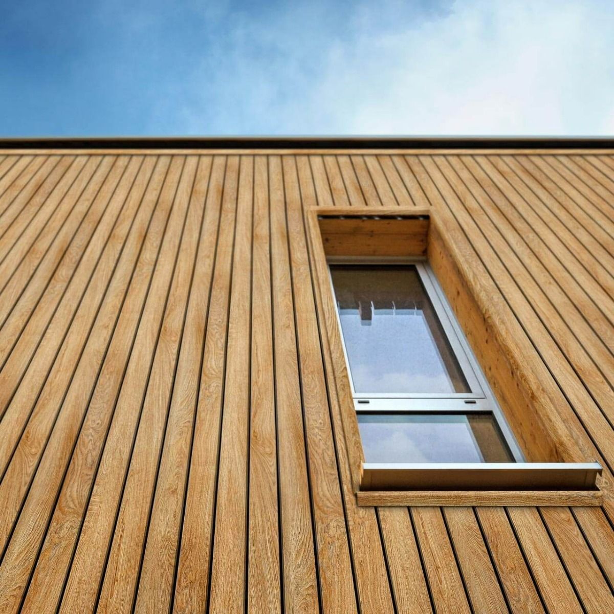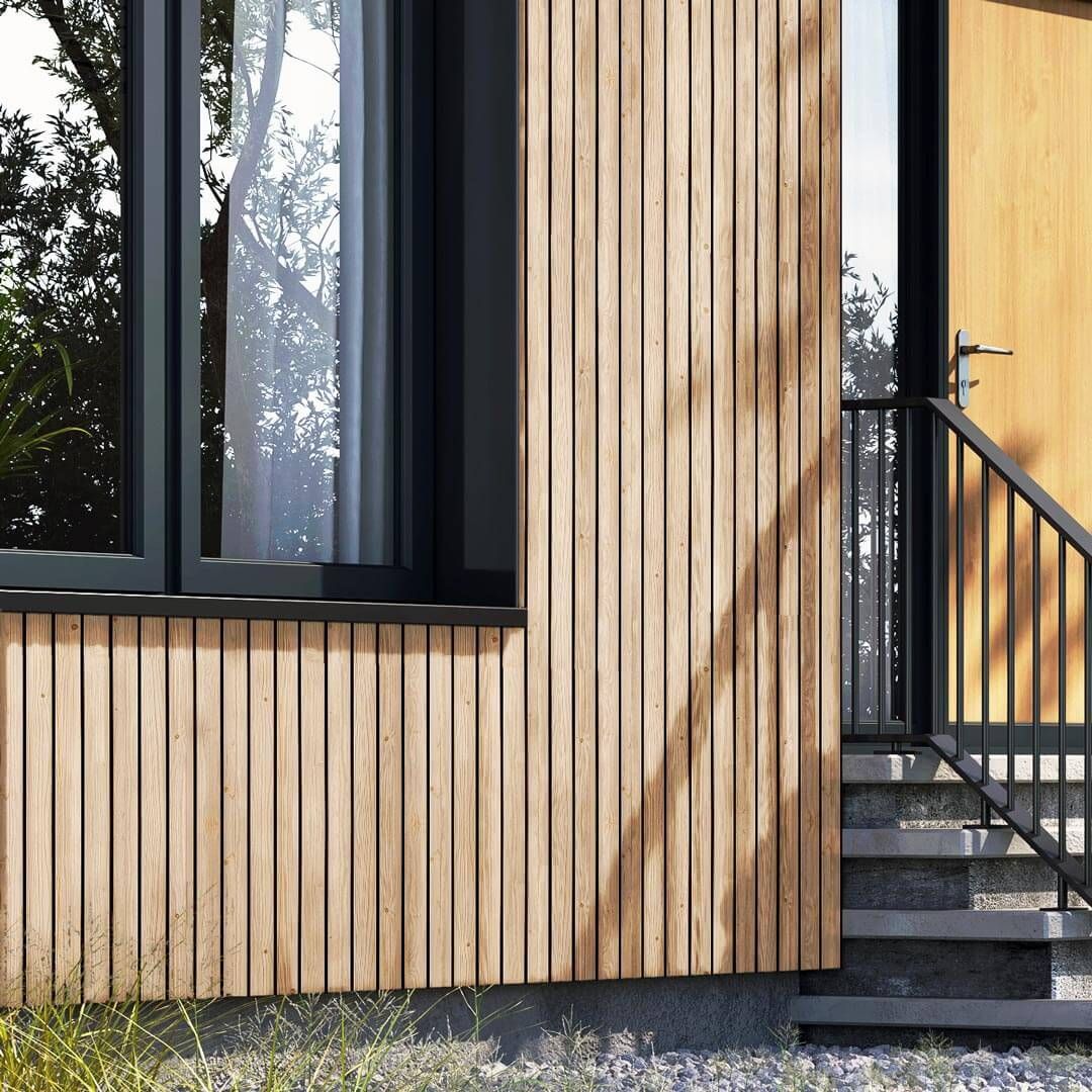 Fasádní desky z kolekce vinyPlus Quattro se vyznačují širokým čtyřitým profilem, který vytváří lamelový efekt. Laminovaný povrch je z UV dýhy nejvyšší kvality s texturou připomínající dřevo.