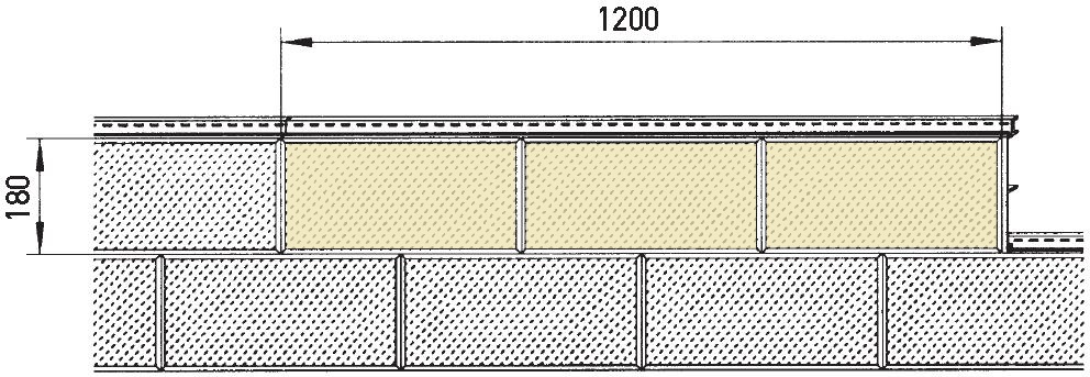 Mezi deskami je přiznaná drážka a každá deska je ještě rozdělena drážkou na třetiny, deska VT138 vytváří na fasádě kvádry 180 x 400 mm