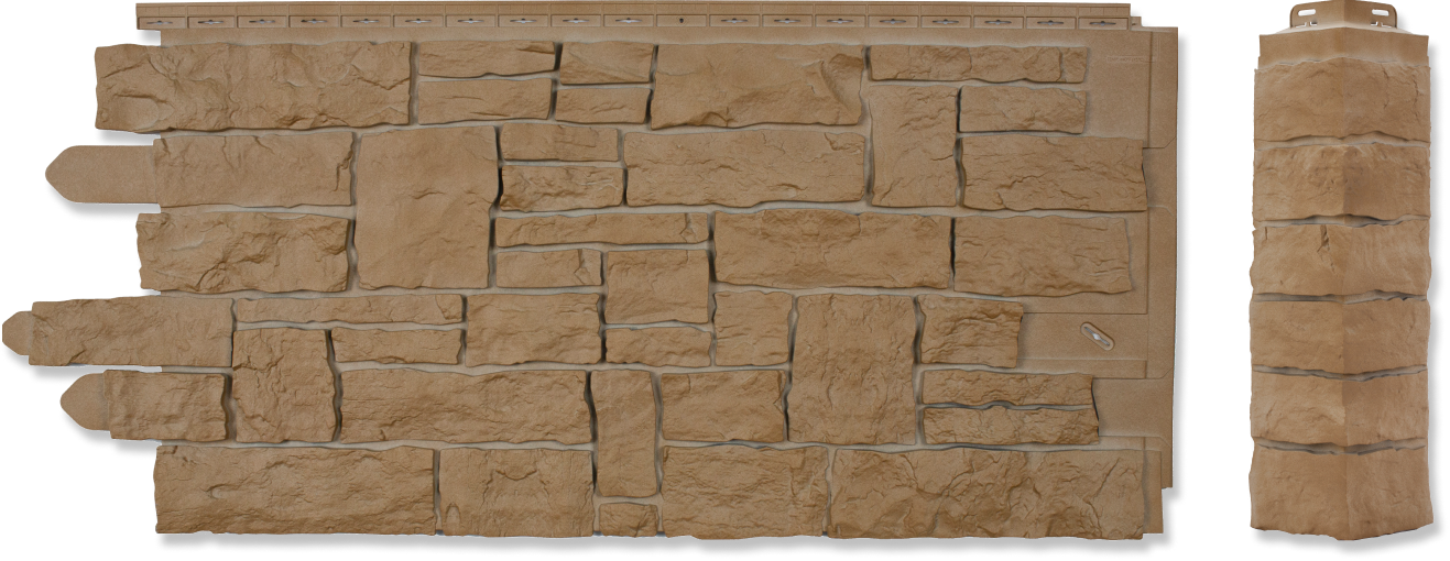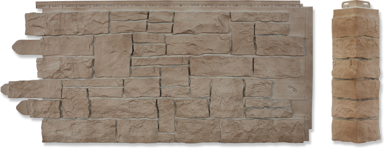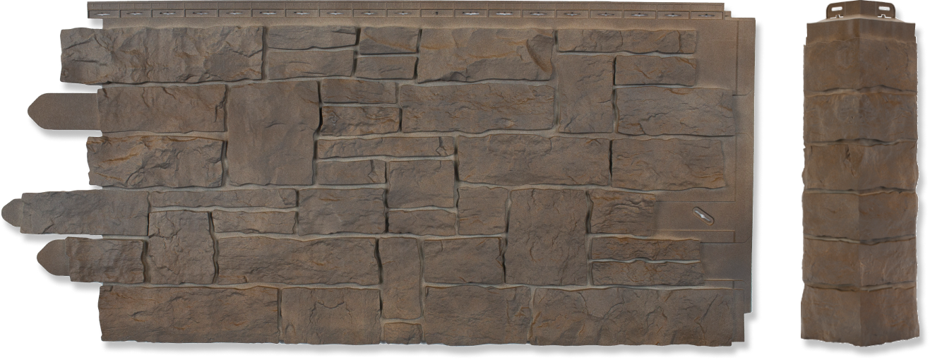 Dvoudílný rohový prvek pro obklad Hand Cut Stone sestává ze spodní a horní části. Spodní část se osadí jako první, ještě před instalací fasádních panelů. Horní část se nasadí na spodní část až po dokončení instalace obkladu z fasádních panelů. Na upevnění každého rohu na podkladní rošt je potřeba min. 6 ks vrutů.