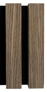 27mm dřevovláknitý panel (lišta), vyrobený z kvalitního MDF materiálu, podkladem je 8 mm černá polyesterová plst