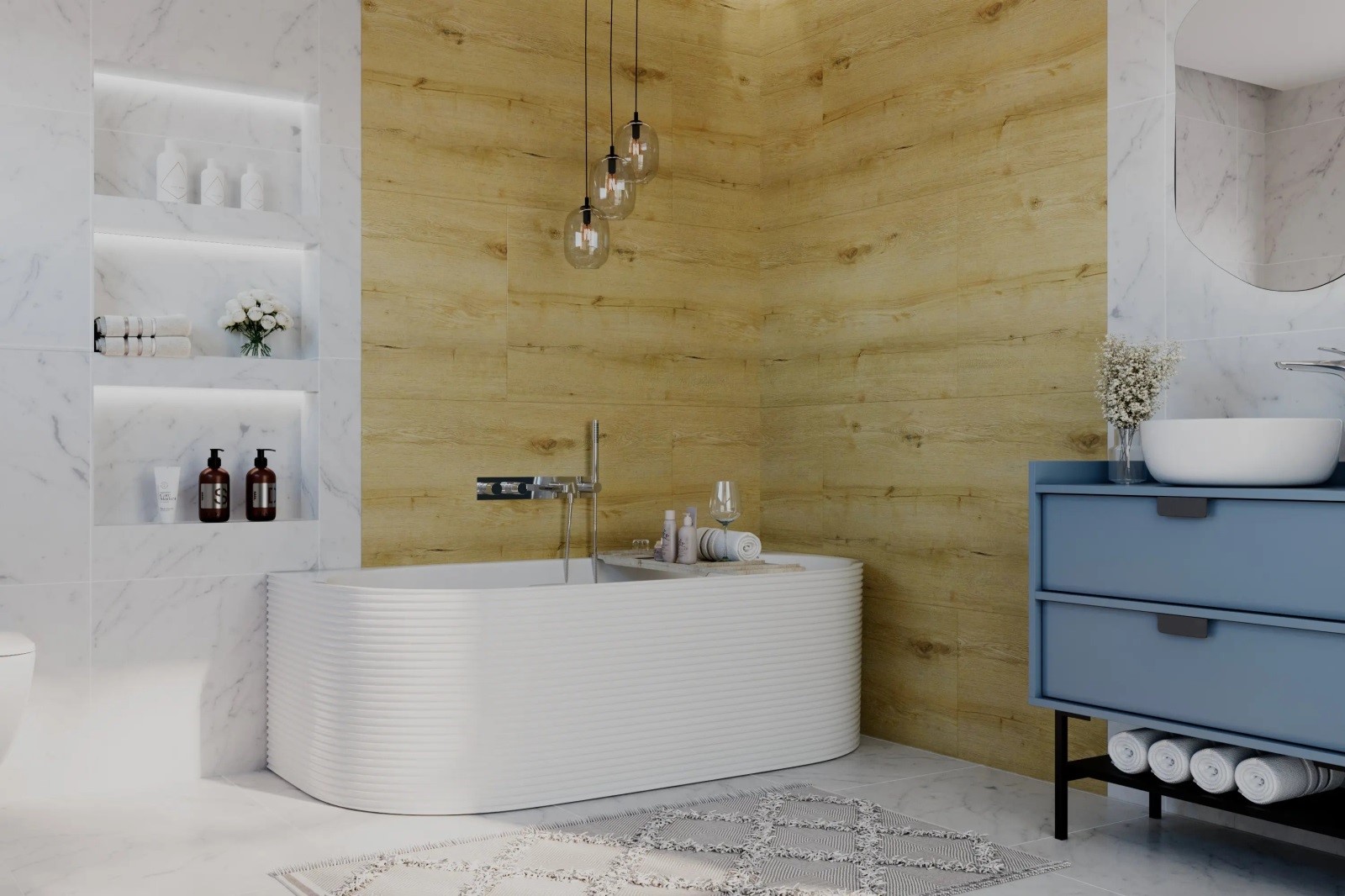 Základem je tvrdé kompozitní jádro, které bylo následně pokryto dekorativní vrstvou a zajištěno povlakem odolným vůči UV záření. Díky tomu má panel vysokou odolnost proti poškrábání a poškození. Díky 100% vodotěsnosti, odolnosti proti nárazu a tvarové stálosti jsou moderním řešením současnosti. SPC panely jsou antibakteriální recyklovatelné a ohnivzdorné. Vybírat můžete z atraktivních dekorů dřeva, kamene, mramoru nebo betonu. Obkladový SPC panel je určen pro montáž na stěny místnosti. Je odolná vůči vlhku, takže je vhodná i do koupelen. Snadno a rychle se instaluje (pero drážka) a jak na výšku, tak i na šířku. SPC panely se dají velmi snadno řezat na libovolné rozměry a lze je nalepit na jakýkoliv srovnaný povrch, čehož se využívá u umakartových bytových jader, nebo pro instalaci přímo na starý keramický obklad. Navíc SPC obklad vytváří bezešvé povrchy, který se dobře udržuje. Pro instalaci těchto obkladových panelů lze vybrat i z naší široké nabídky dokončovacích profilů, které jsou určeny k těmto SPC panelům.