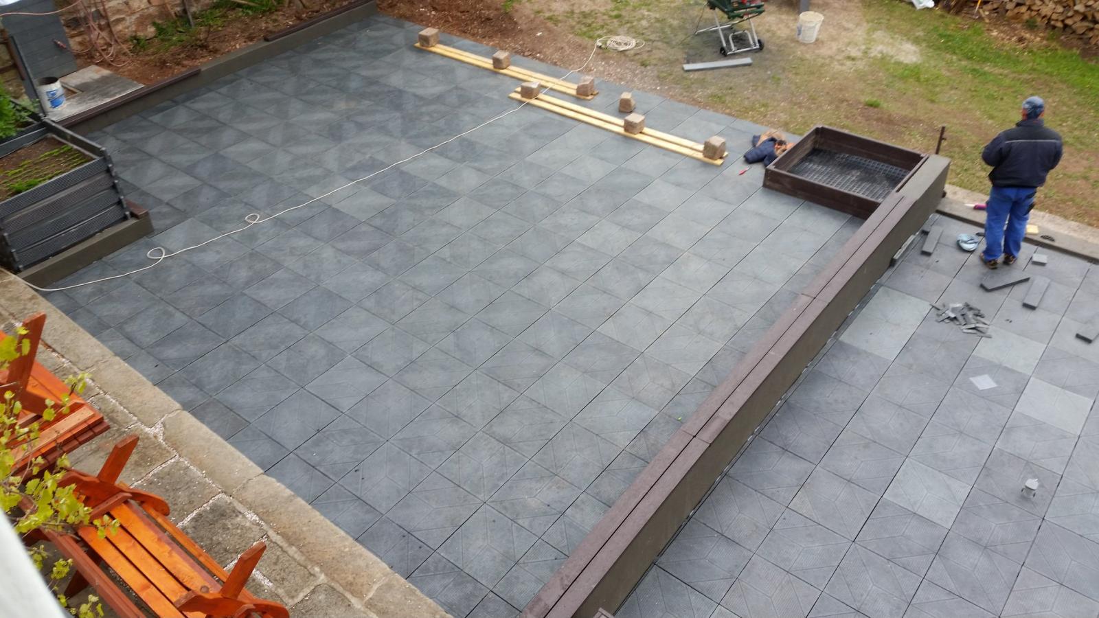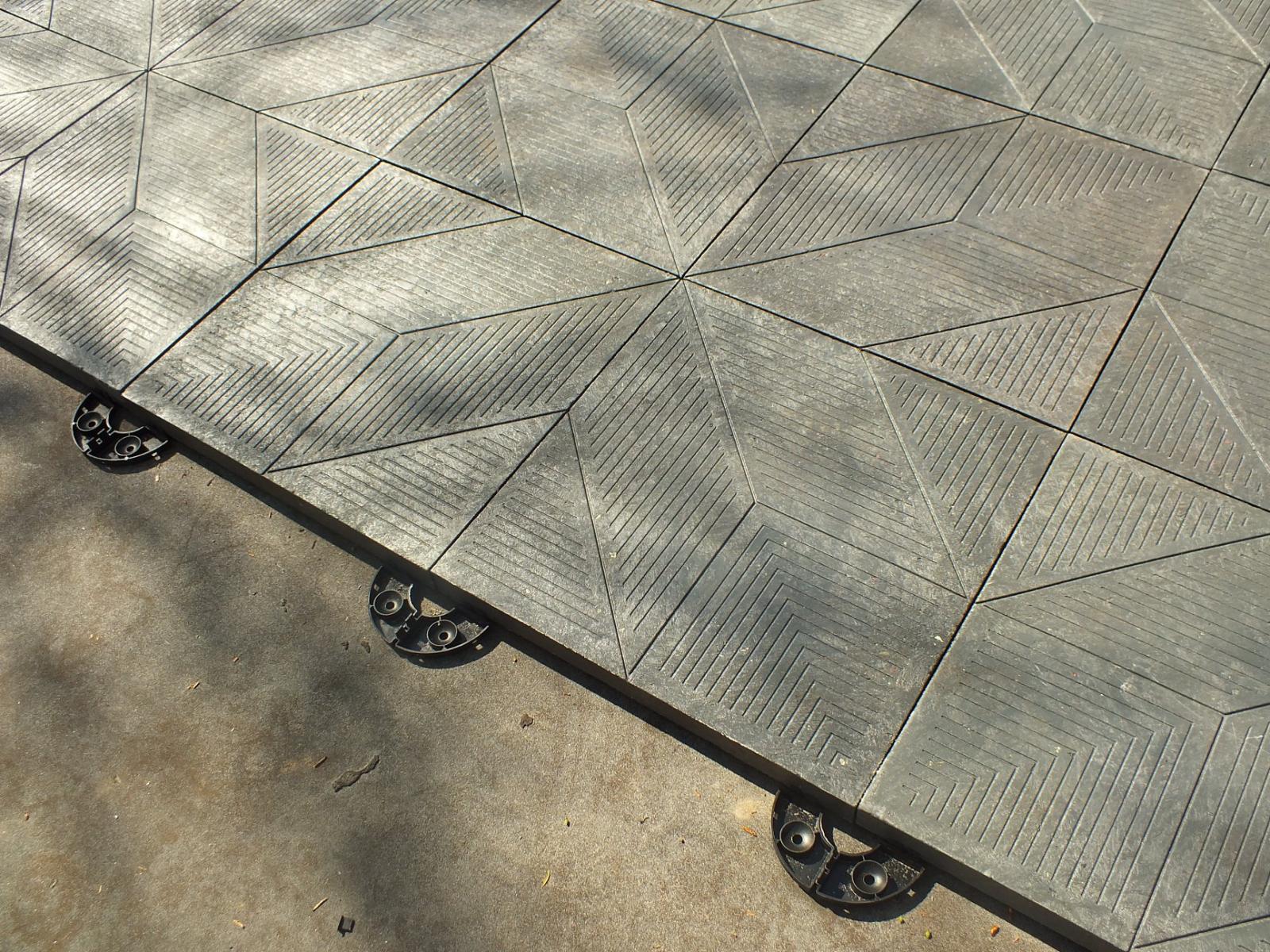 Alternativa k našim plastovým terasovým deskám. Dlažbou s dezénem si v ploše vytvoříte vlastní ornament. a když se náhodou okouká, poskládáte si jiný nebo použijete dlažbu hladkou.