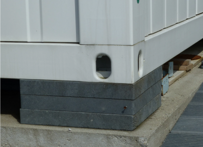 Distanční podložky jsou obzvlášť vhodné pro krátké prostoje kontejnerů. Panely lze použít bez náročné přípravy podkladu. Lze je položit na zpevněné povrchy (asfalt), ale také na sypké povrchy jako je štěrk. Panely jsou vhodné také jako základ pro mobilní prodejní stánky, mobilní toalety, opěrná kola pro přívěsy a karavany.