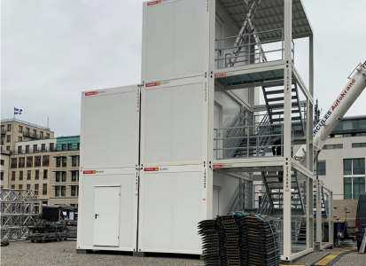 Stohovatelné vyrovnávací desky/distanční desky Hanit® z plastu pro rozložení nákladu, podepření palet, nastavení úrovně, jakož i pro oddělení a větrání prefabrikovaných betonových dílců, kontejnerů, skladových kontejnerů, zámořských kontejnerů, kancelářských kontejnerů, modulových kontejnerů, modulových domů a dočasných domů. Plastová deska je stejně vhodná jako podložka pro vyrovnávání výškových rozdílů v lešení pro fasádní lešení, jakož i v sektoru akcí pro výstavbu pódií a lešení pódií.