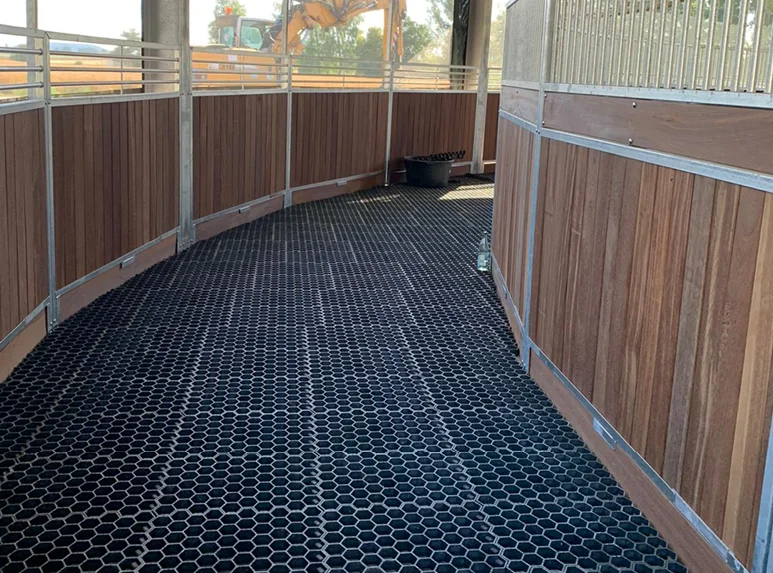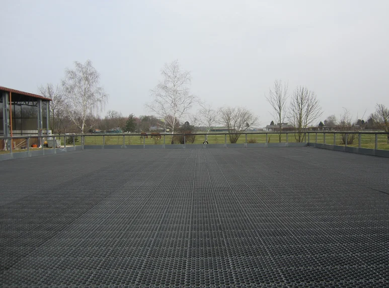 Chtěli byste postavit jezdecký areál nebo rozšířit vstup na farmu či zpevnit parkovací místo a hledáte robustní dlažbu? Panely výběhu 50 x 40 x 4 cm od Hanit® jsou ideální pro koňské výběhy, jezdecké arény, lonžovací kruhy, výběhy, parkovací místa, krmné plochy nebo silně využívané přístupové cesty. Jednotlivé panely paddocku jsou k sobě připevněny tak, že není možné, aby se jeden panel potopil. Panely paddocku umožňují ježdění bez bláta, které lze využívat po celý rok. Jsou elastické, odolné proti rozbití, trvanlivé a odolné vůči amoniaku.