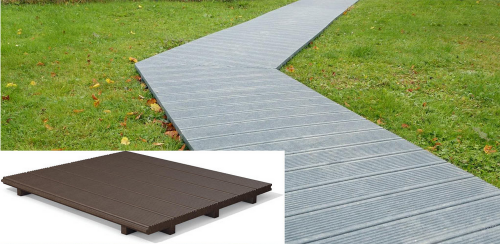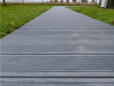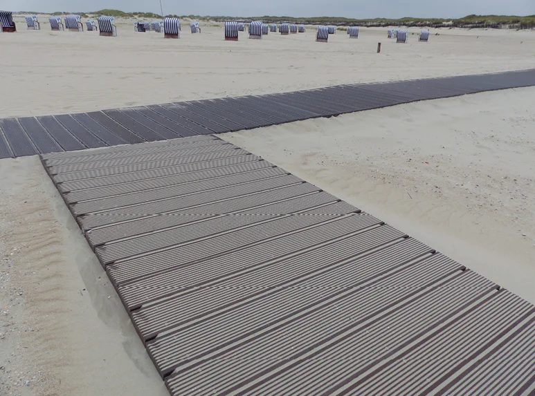 Materiálové vlastnosti recyklovaného plastu hanit® jsou zde samozřejmě také evidentní a vytváří ideální řešení pro plážové a zahradní stezky. Jednoduše je poskládejte metr po metru – a v případě potřeby je znovu rozložte. Díky jednoduchému principu zásuvného modulu je tento prvek desky ideální také pro dočasné použití, například pro dočasné cesty. Mezi typické oblasti použití deskových prvků vyrobených z recyklovaného plastu patří rybářská mola a mola ke koupání, pláže, lesní i zahradní stezky, konstrukce schodišť, mostovky, mola, kanoistická mola, plošiny, terasy a balkony.