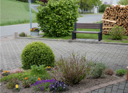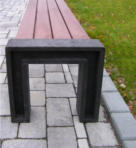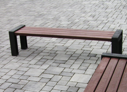 4 desky na sezení, 2 boční díly ve tvaru U – lavice je hotová. Funkce zde určuje vzhled, komfort sezení zredukován na to podstatné, na čem záleží. Tomu odpovídá také výběr materiálů, které navíc trvale realizují to, co tvar slibuje.