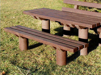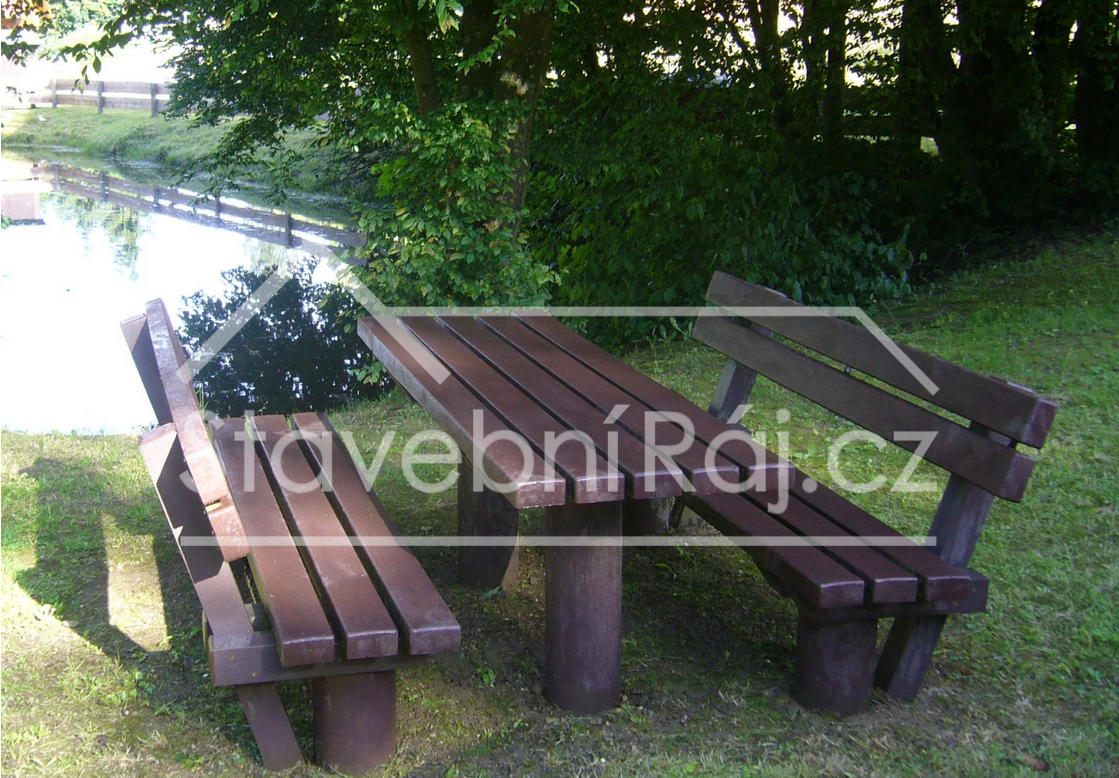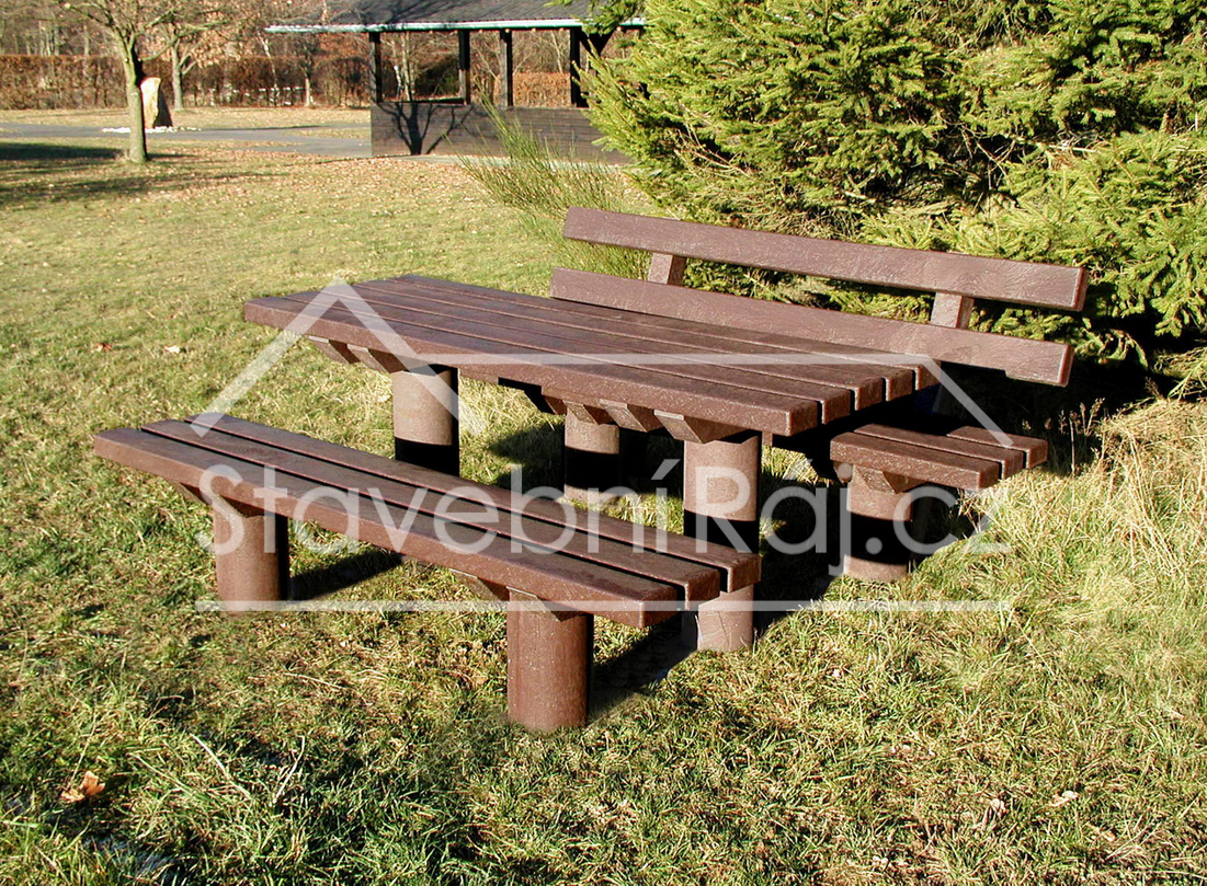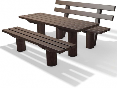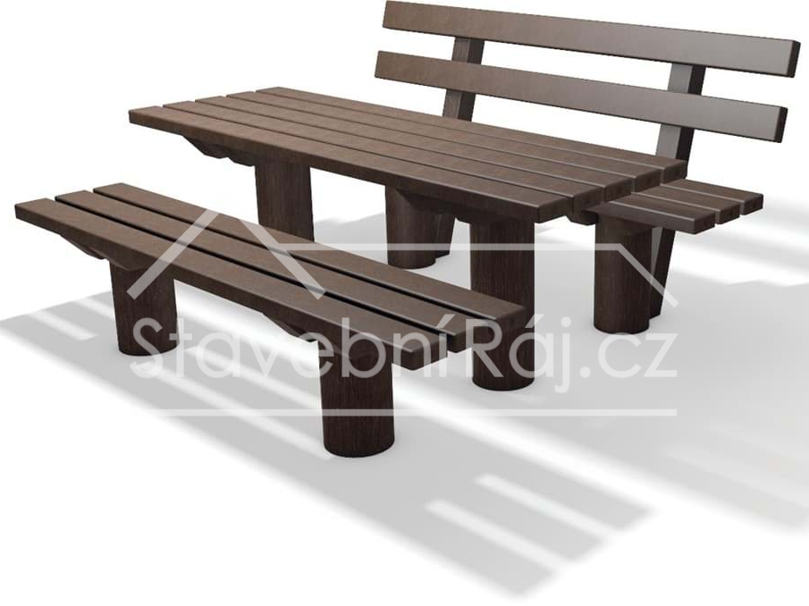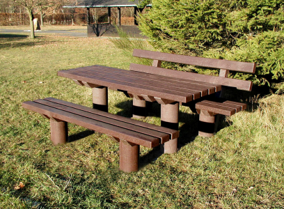 Robustní sedací souprava Taunus o délce 2 m je celá vyrobena z recyklovaného plastu v hnědé barvy. Komponenty si můžete poskládat sami, „tvořený“ stolem a dvěma lavičkami s opěradly a bez opěradla.