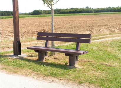 Charakteristicky šikmá konstrukce opěradla a nožní prvky připomínající kmeny, toto jsou určující prvky lavičky Taunus s opěradlem.