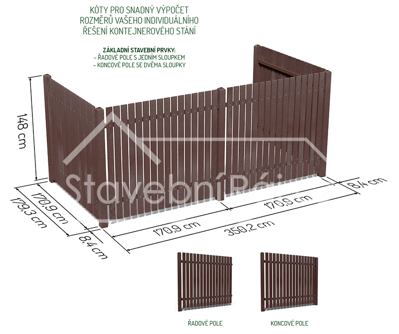 Nevybrali jste si? Pak právě pro Vás jsme připravili program individuálního řešení kontejnerového stání zde, kde si jej dle svých parametrů a požadavků jednoduše navrhnete a objednáte. Dodáme vám vždy vše do posledního šroubu a okamžitě se můžete pustit do montáže.