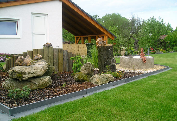 Náš lemovací obrubník je vylepšený zahradní obrubník, který jsme doplnili o vodorovnou plochu zamezující přerůstání trávy až ke svislé části obrubníku. Snadno tak sekačkou posekáte trávu bez nutnosti dodatečného začišťování.
